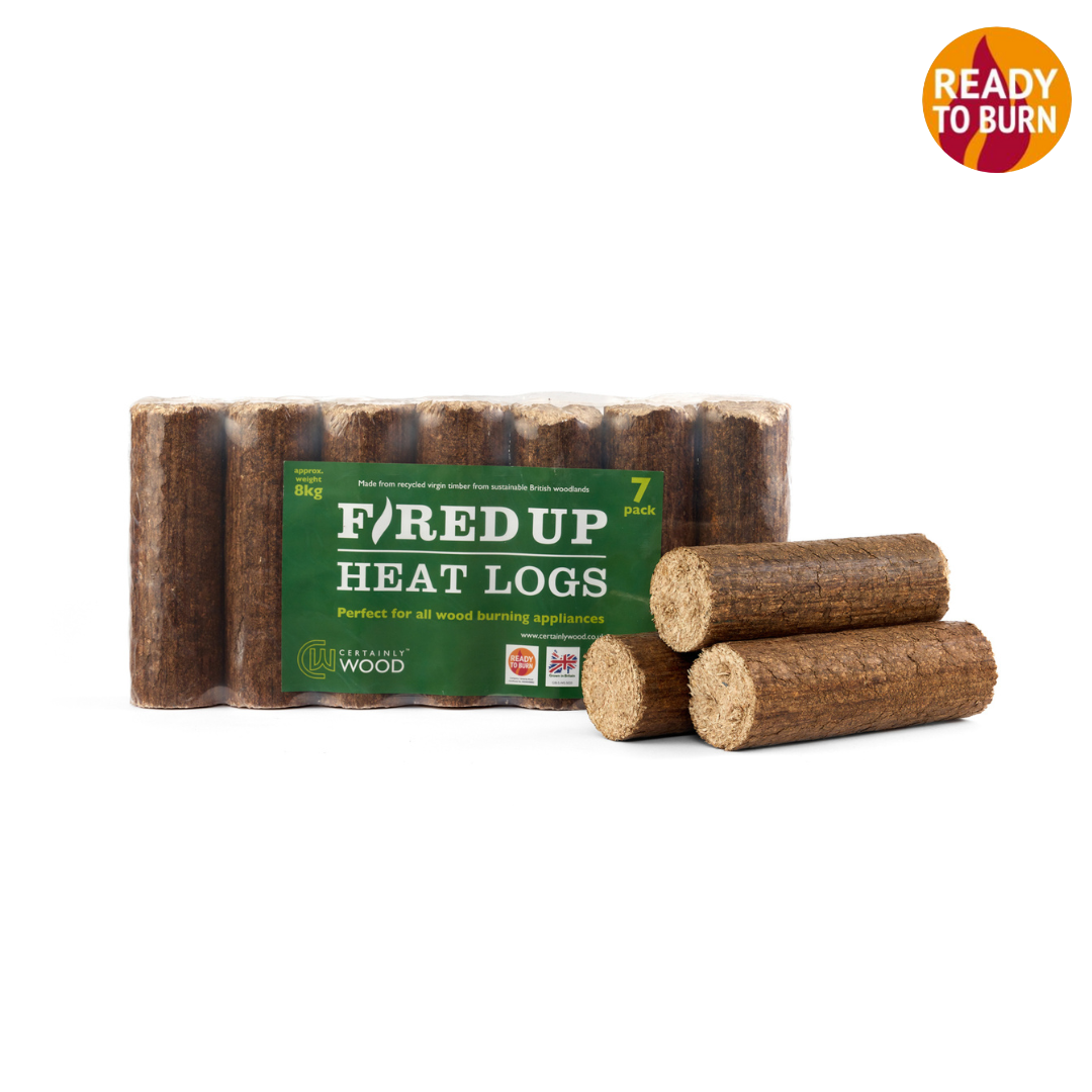 - Premium Quality: Made from 100% sustainable virgin timber, Fired Up Heat Logs are built to last and deliver consistent performance. They are also high in calorific value.