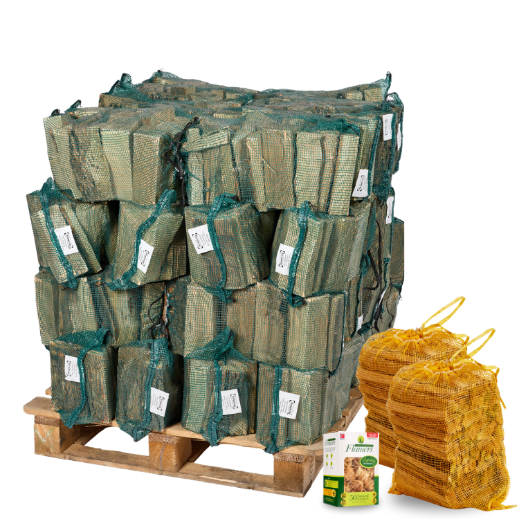 - Bundle content: pallet of 40 nets of premium kiln dried logs with two FREE kindling nets and a FREE Flamer 50-pack.
